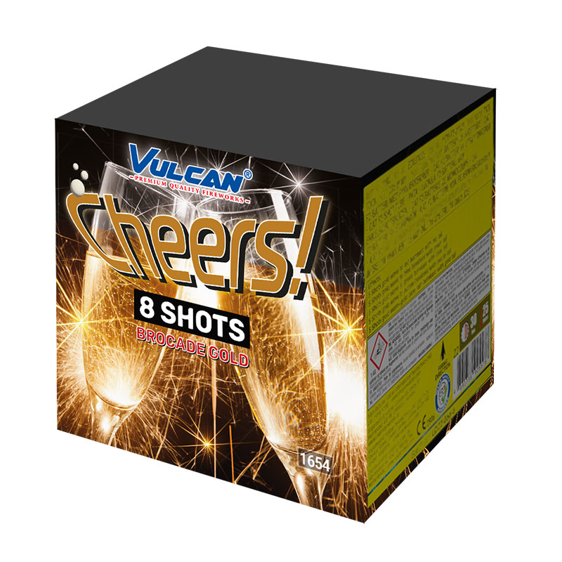Cheers” is een indrukwekkende 8-schots vuurwerkcake die de lucht vult met schitterende champagne knallen.