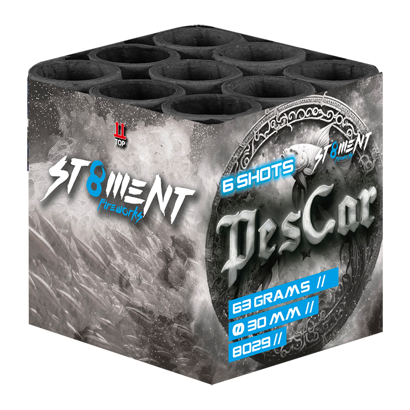 Pescar is Spaans voor vissen. Deze kleine cake met grote 30 millimeter tubes schiet grote scholen met vissen de lucht in. Door de unieke combinatie van fish-effecten in een minetube een zeer bijzondere cake, welke menig toeschouwer zal verbazen.
