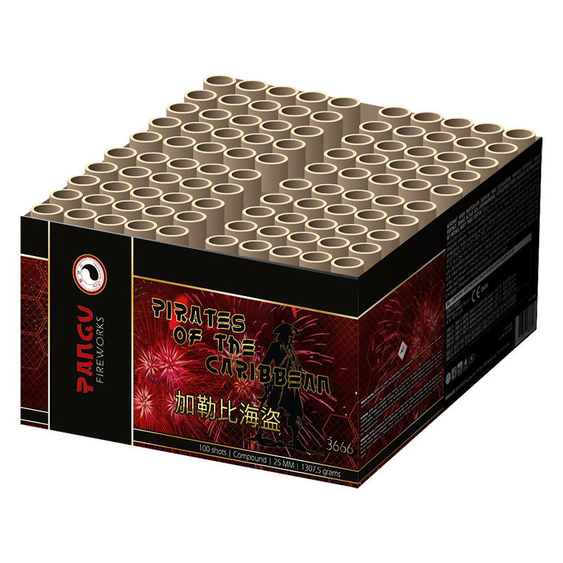 Pirates of the Caribbean 100 shots 25mm Goedkoop vuurwerk kopen bij Vuurwerkwinkel Beverwijk
